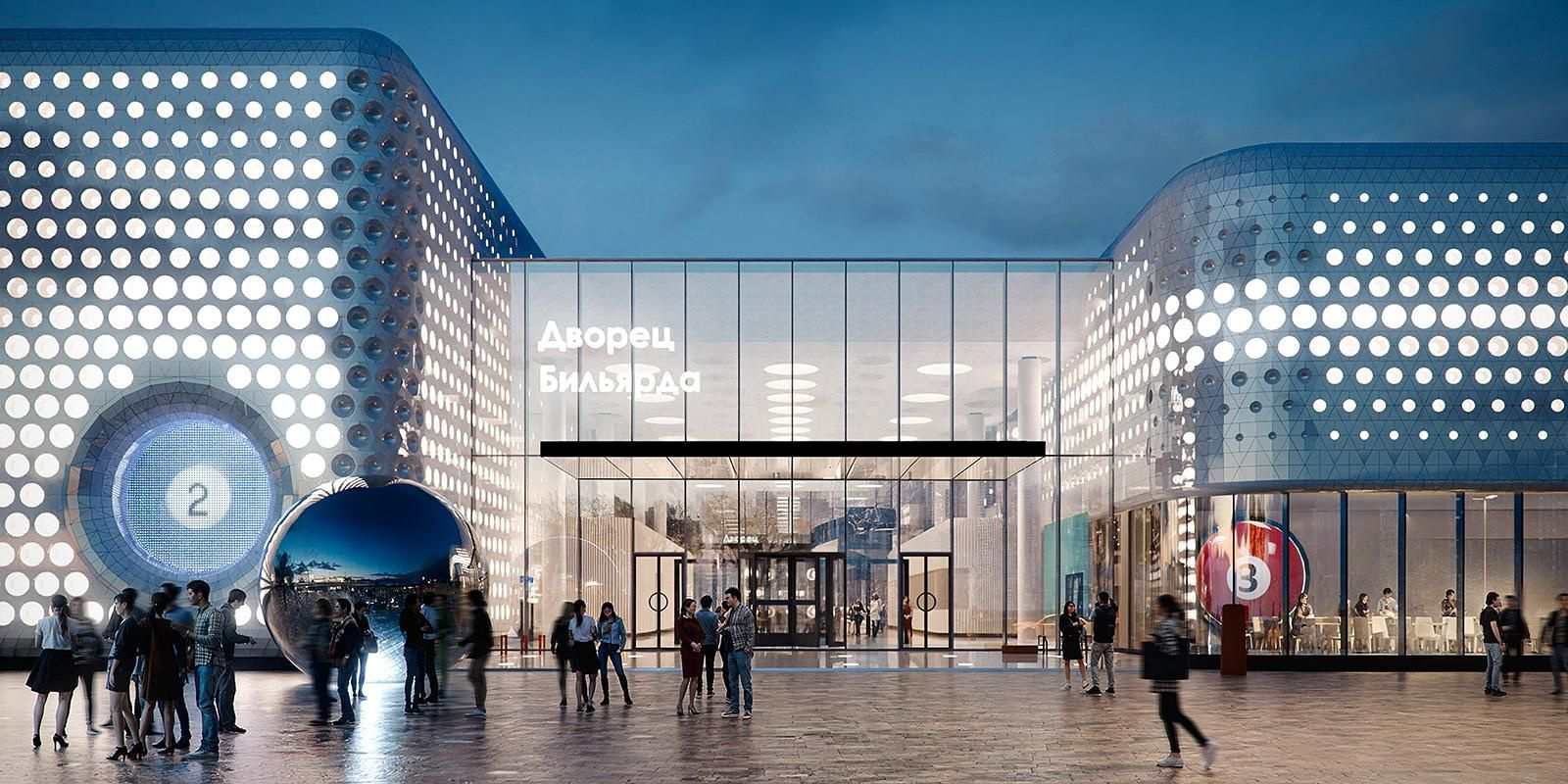 Утверждена архитектурная концепция Дворца бильярда в районе Хорошево-Мневники. Здание будет иметь плавные очертания и строгий фасад с повторяющимся геометрическим узором из треугольников. Окна выполнены в форме иллюминаторов или круглых отверстий, что символизирует бильярдные шары. Подсветка здания организована с помощью контражурного освещения, достигаемого через перфорацию на фасаде. Для этого применяются встроенные RGB-светильники с различными режимами подсветки, – сообщает пресс-служба, цитируя руководителя департамента градостроительной политики Владислава Овчинского.